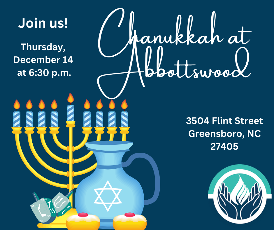 Join us at Abbotswood for a community candle lighting and Chanukkah celebration. We meet at 6:30 pm for latkes and songs in the main lobby.