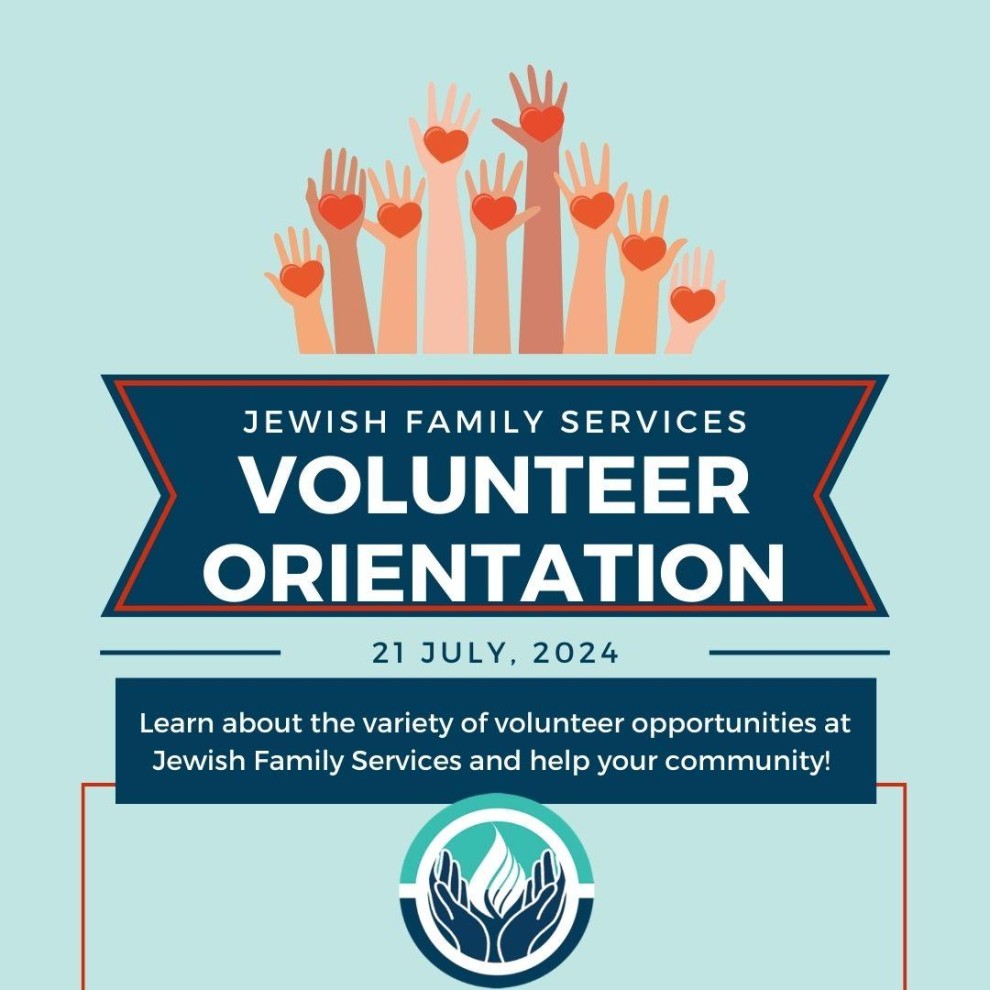 Have you ever wondered what kind of volunteer opportunities JFS has available? Do you want to volunteer but don't know where to begin? Join us at Jewish Family Services on Sunday, July 21 at 2 p.m. to learn about different opportunities, time commitments, and our mission.