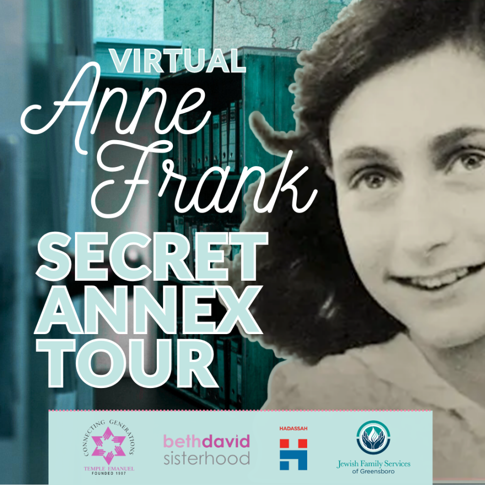Hadassah, Temple Emanuel Sisterhood, Beth David Sisterhood, and Jewish Family Services invite you to a Special Brunch featuring a Virtual Tour of the Anne Frank Secret Annex in Amsterdam.Â